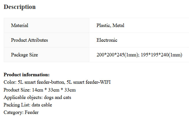 - 1 × Pet Feeder 5L (Smart Button / WIFI Version)